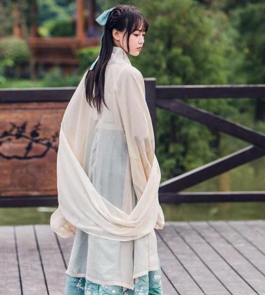 金牛的专属汉服,上身是以白色打底,下身则是青色的长裙,裙边绣着几朵荷花,身上还披着一件细纱,给人一种仙女下凡的感觉,穿上去也非常的舒服呢。