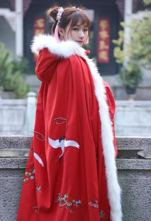 狮子座的专属汉服全身以红色为主,披肩上还有一圈白毛,如果冬天穿上这一身,就感觉像郡主一样,一种高贵气质流露而出。高贵不可侵犯。