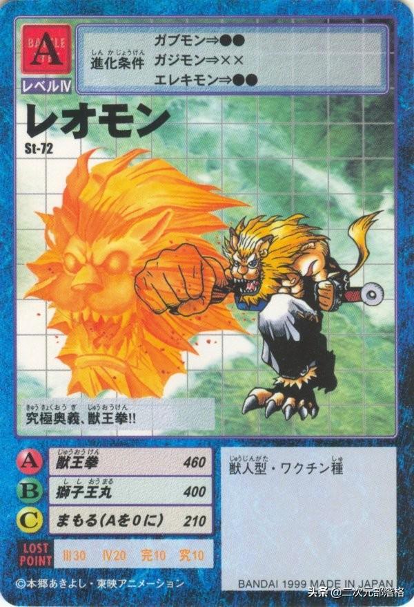 我们都知道,作为动画中逃不过的梗,几乎每次登场都会领便当,无论是狮子兽系数码兽还是以狮子为原型设计的数码兽,如冰狮子兽、芳香兽等,并且狮子兽的进化链也非常明确,狮子兽-格斗狮子兽-黄金剑狮兽/番长狮子兽,还有一些诸如白虎兽等进化链,但实际上还有一条隐藏的进化链。
