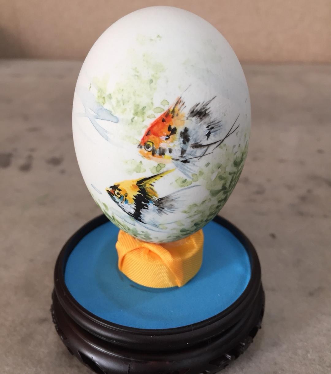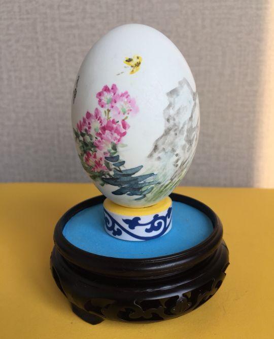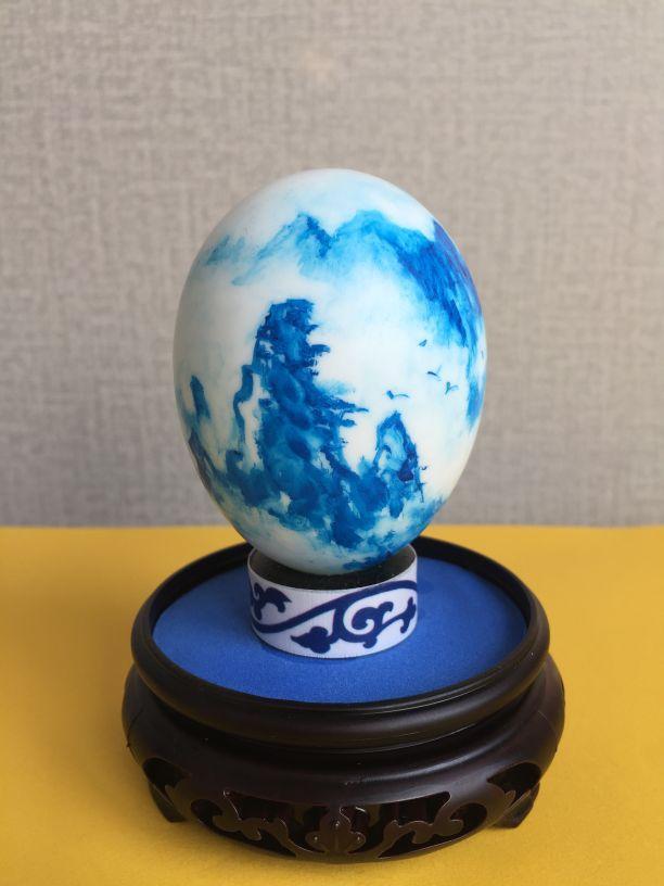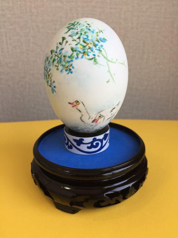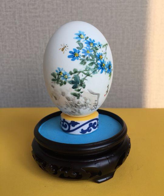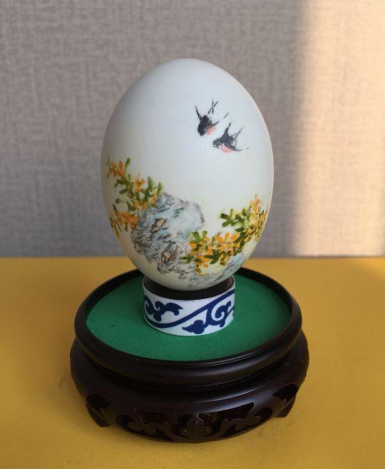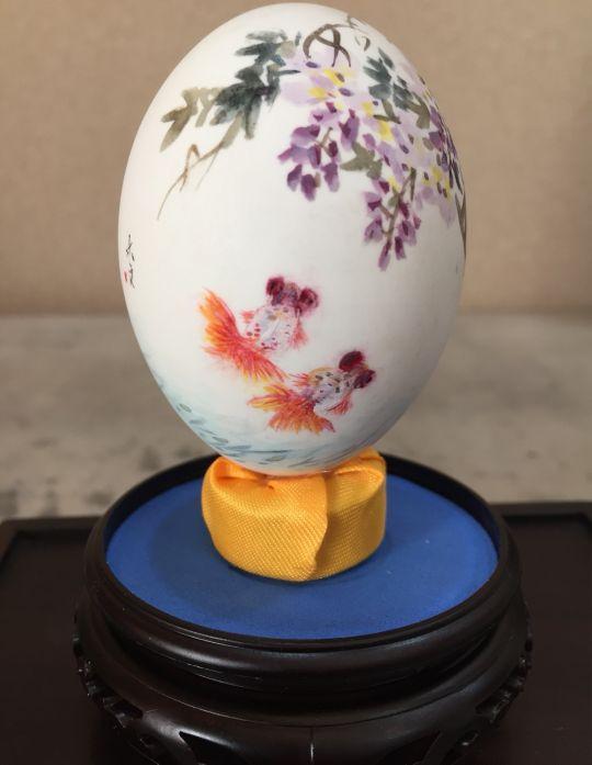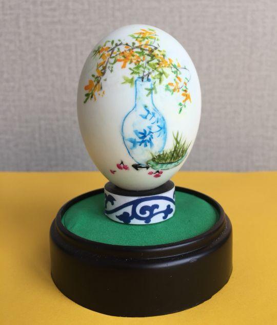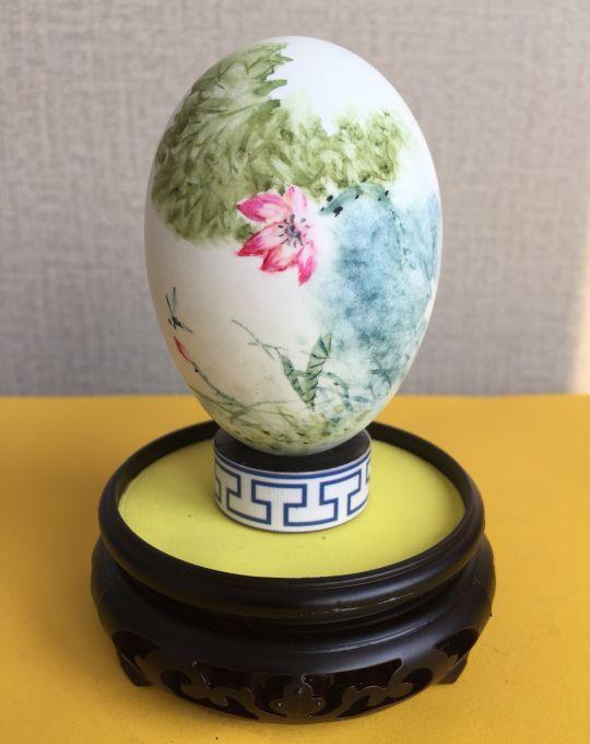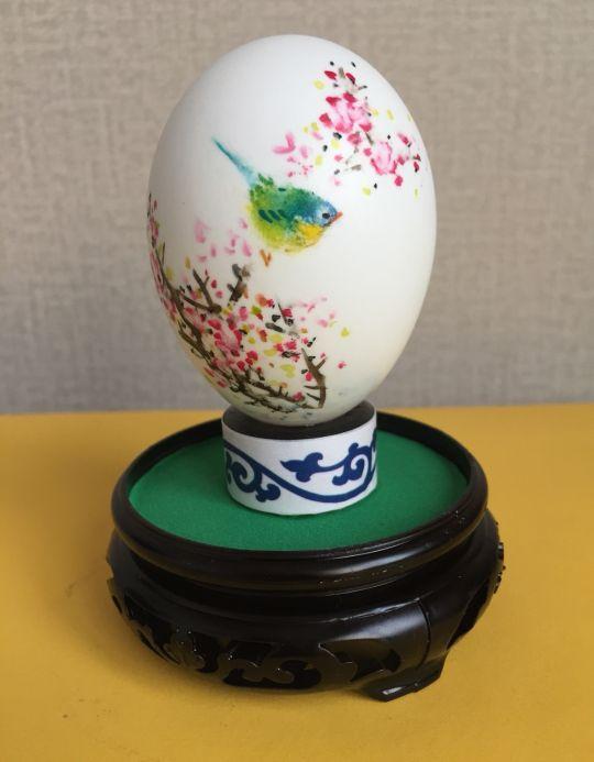 四、用手握住鸭蛋,反复甩,直至蛋壳内的蛋黄、蛋清全部甩出,然后注入清水继续甩,需要重复多次,直至甩出来的水清澈不浑浊,至此用餐巾纸擦干就可作画了, 注:甩的时候一定要注意力度的掌握,防止蛋壳破损。