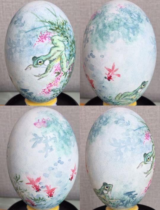 一、由于有的蛋壳表面存有油脂,颜色画不上,可以适当在颜料中加些肥皂。