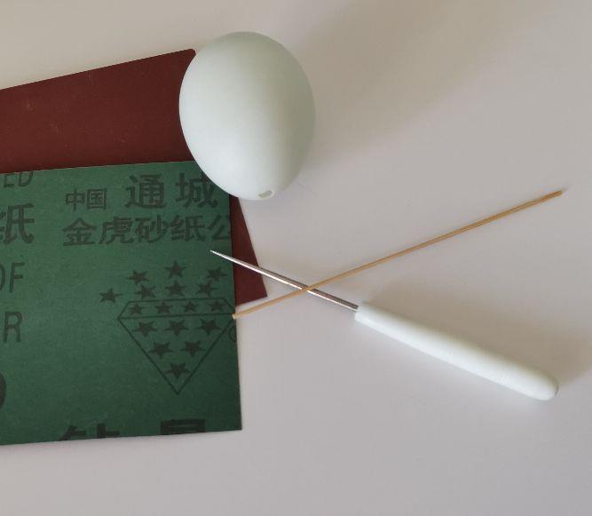 一、用金相砂纸将生鸭蛋轻柔均衡地砂几遍,直至蛋壳表面无污渍、油脂即可。