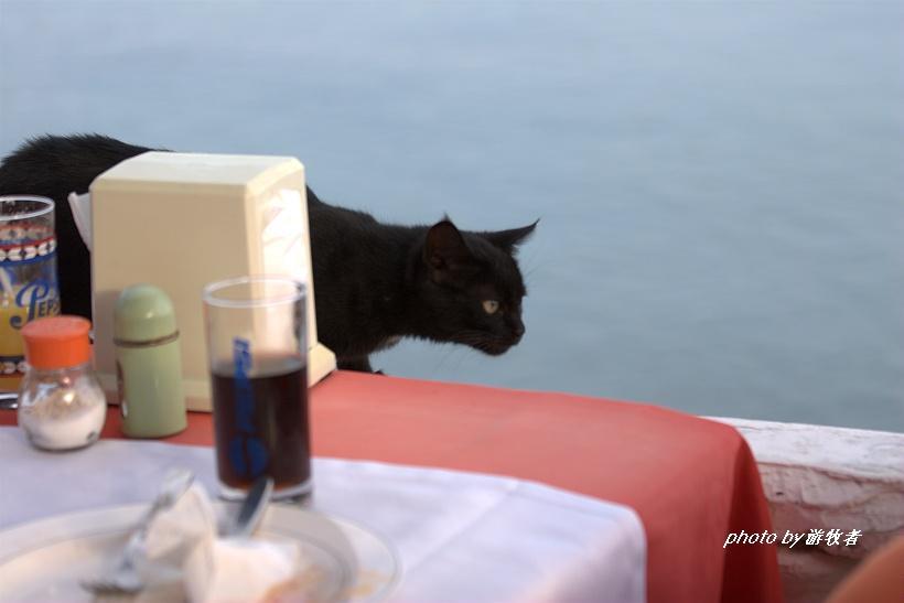 在伊斯坦布尔,不论家猫还是野猫都能幸福地生活着。海边的一张桌子上,一只黑猫大大方方地来到了我的餐桌上,毫不客气地寻找着自己的午餐,在猫咪的眼里,人类有帮助它准备食物的义务。