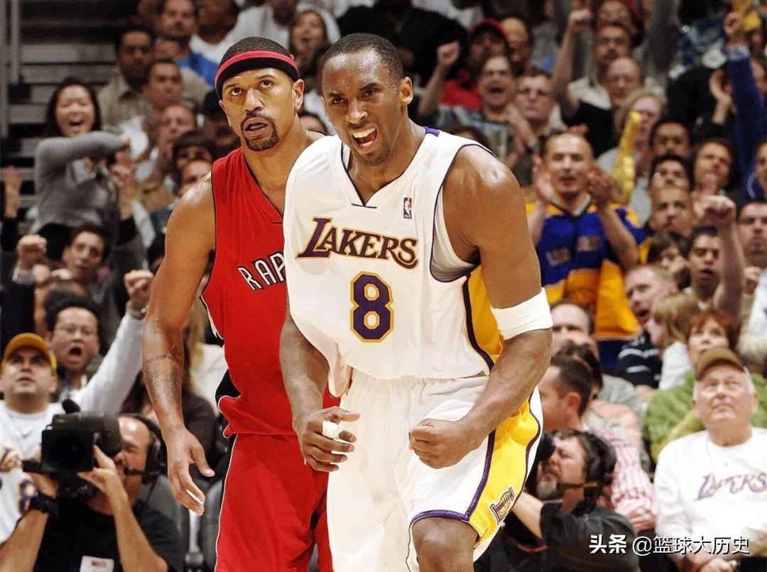 不过杰伦罗斯更知名的大概是两件事,一是他曾经在2000年总决赛上垫脚科比——杰伦罗斯后来在节目里承认了当时他就是故意的,二是在猛龙效力期间,杰伦罗斯被科比砍下了81分,科比后来还经常拿这件事调侃他。