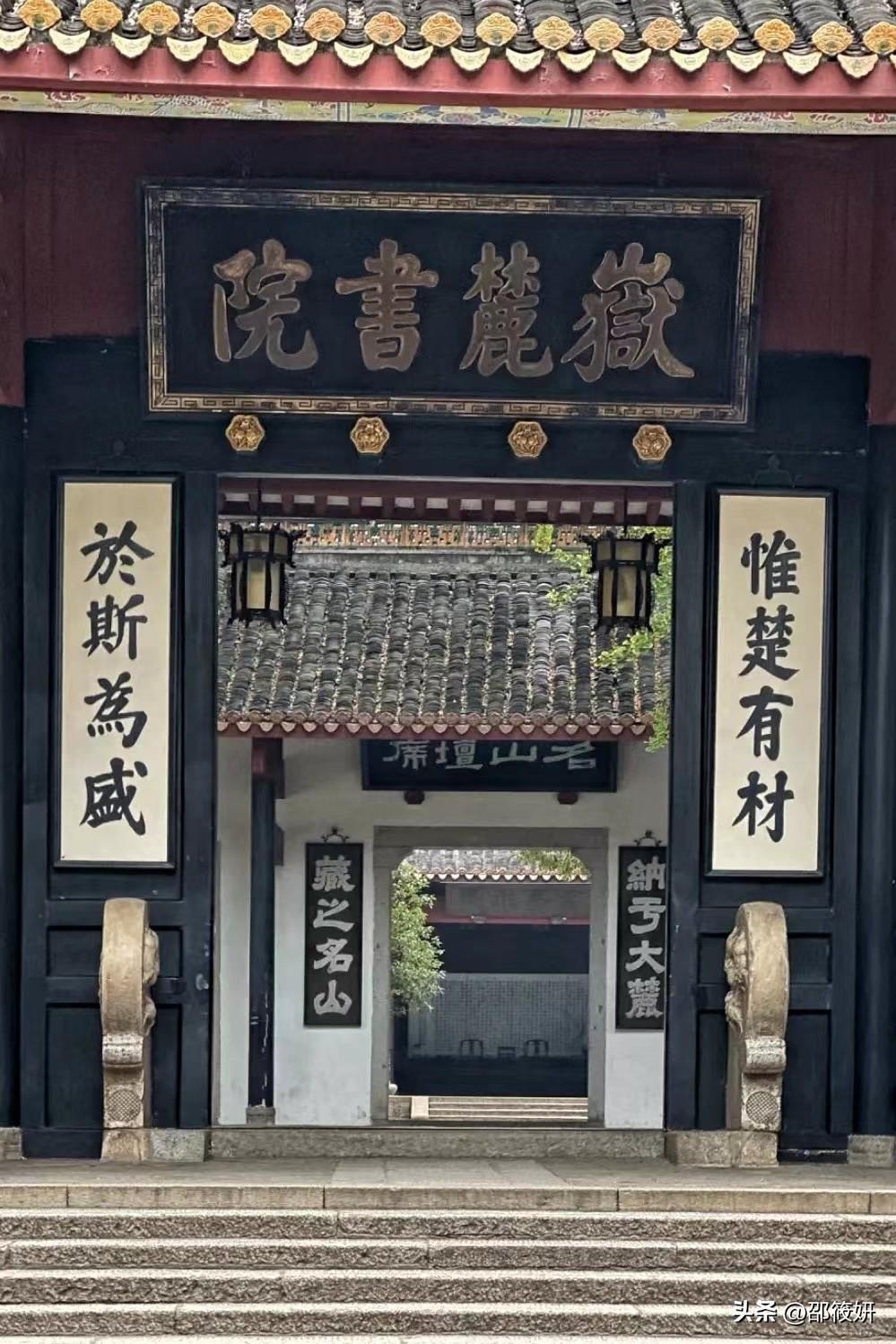 岳麓书院是我国历史上赫赫有名的四大书院之一,始创于北宋,已有一千多岁的高龄,是名副其实的千年学府。“惟楚有材,于斯为盛”,这副对联挂在书院大门上当之无愧。大门牌匾上的岳麓书院四个大字宋真宗赵恒所书,院内还有很多名人手书的牌匾和碑刻。有兴趣的朋友可以去观摩。其中以麓山寺碑亭中的那块“三绝碑”最为出名。它是一块唐碑,因文、书、刻三者佳,被誉为“三绝碑”。由唐代著名文学家、书法家、篆刻家李邕公元730年亲手撰文、书丹、镌刻,历代很多著名书法家都曾前来瞻仰临摹。