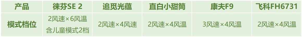 测评方法:开启吹风机,用温度计检测热风档开机10s前后温度差