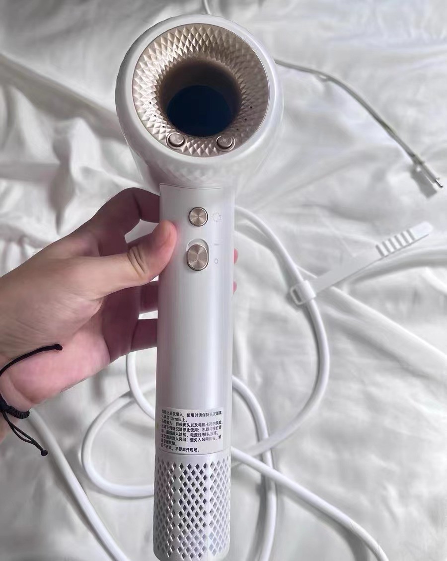 直白是上一代网红吹风机了,在某书上火过一阵子,外型更偏向复古风,奶油白配色+银色边框很温柔,很得适合女孩子