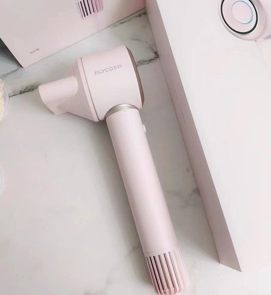 同为吹风机老国货一员,飞科这款就显得更有科技感,窄风筒设计更加轻薄,像一个大号麦克风,一共有灰、黑、粉三种颜色可选