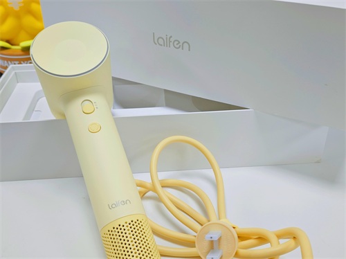 机身依旧是长手柄中心下垂设计,拿着很轻盈举着吹也不会累手,风筒延续徕芬家族风温灯环,直观显示风温