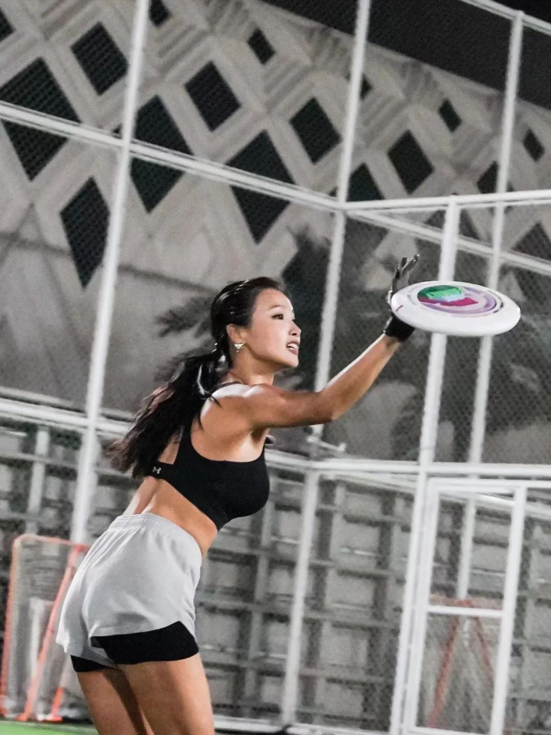 作为美式辣妹,安吉林有着健康色的小麦肌肤和漂亮的肌肉线条。而她和户外运动的故事,恰好和今年爆火的飞盘有关。