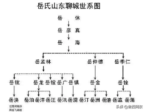 在《岳飞庙志》中,还收录了今河南省台前县孙口乡西官路村的《岳氏世谱》,和河南省偃师市首阳山镇寺里碑村的《岳氏宗谱》。这两份谱牒,也详列了汤阴岳氏先人的原籍——聊城的世系。