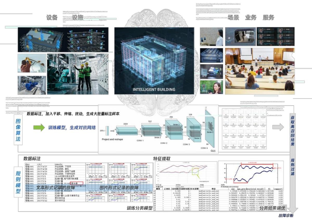 利用AI技术,以设备安全运行及节能为目标,自动监测的相关信息,并识别设备运行状态是否正常。若有异常,确定故障出现的部位及性质,并预报故障趋势,预防恶性事故发生,对故障趋势进行预判,变被动维修为主动服务,减少安全隐患。在故障诊断技术路径部份,通过对资产管理领域提供结构化、专业的设施设备分类标准、保养标准、巡检标准以及设备标准的操作手册和故障手册,构成领域专业化的知识体系,指导资产管理活动,降低对人的要求,实现标准化。使设备的操作方式,故障处理经验等传统需要靠长时间积累的经验,知识转换为可复制,可学习,可传播的知识库,降低运维人员需求,经验丰富工程师的依赖,提高整体运维团队的运维水平,提高运维效率。