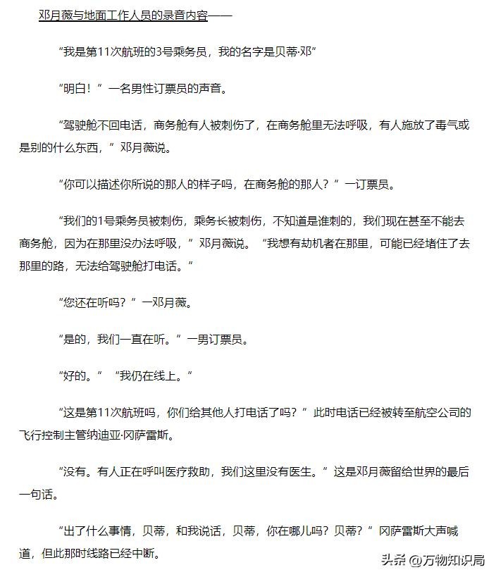 911飞机上华裔空姐邓月薇:临终20分钟电话录音,拯救了千万生命