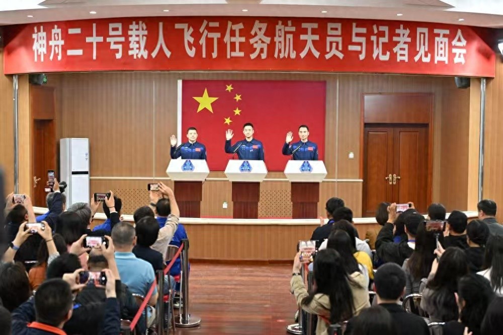 今天,神舟二十号3名航天员在酒泉卫星发射中心问天阁与中外媒体记者集体见面。执行神舟二十号载人飞行任务的航天员乘组由陈冬、陈中瑞、王杰3名航天员组成,陈冬担任指令长。乘组包括2名航天驾驶员和1名飞行工程师,陈冬即将成为第二批航天员中首位三次飞天的航天员,陈中瑞、王杰均为第三批航天员,即将踏上个人首飞之旅。