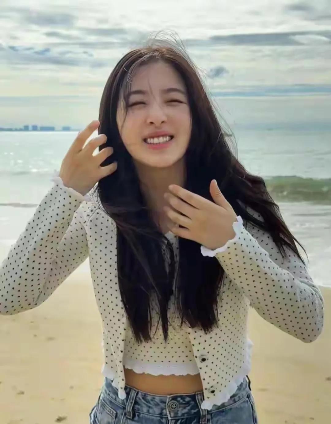 各种俏皮可爱的pose,更是让人直呼“太萌了”!吐舌头的她,简直就是个古灵精怪的小精灵;侧颜凝视,又带着一丝淡淡的忧伤,让人忍不住想要靠近,倾听她的心声。面对大海时,她舒展自在,仿佛与大自然融为了一体,那份从容与自信,让人羡慕不已。