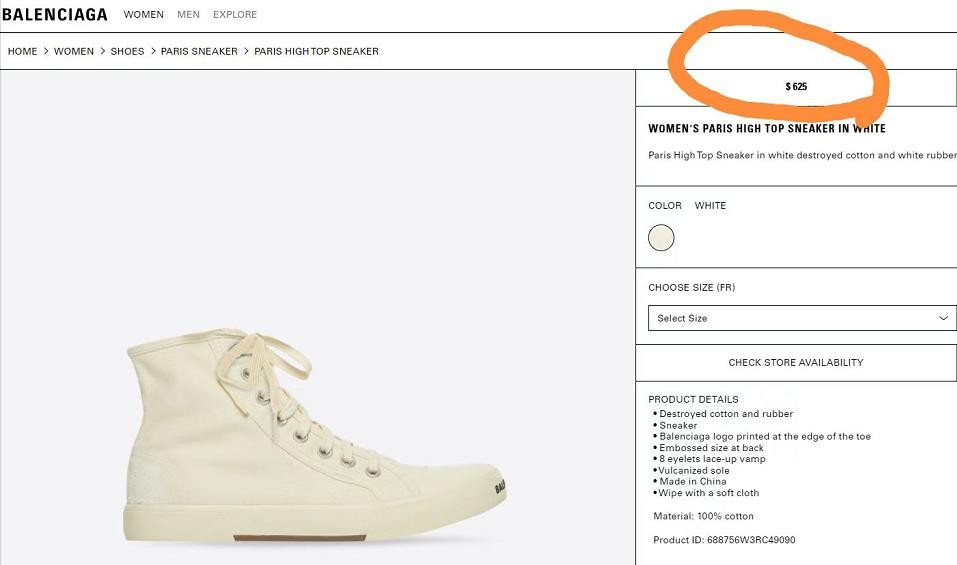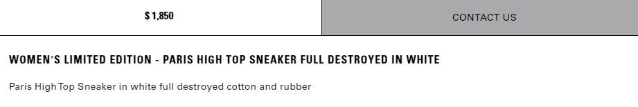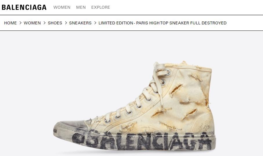 官网页面显示,这款运动鞋的“未被破坏”版本也有推出,名称显示为PARIS高帮运动鞋,售价仅为625美元,不到“完全摧毁”版本售价的一半。