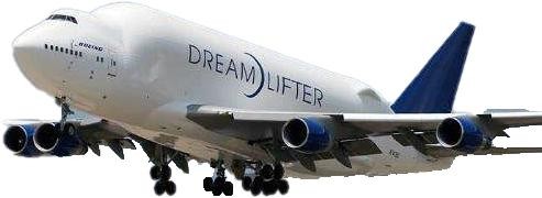 波音747LCF(Large Cargo Freighter):超大型货运机型,波音考虑到将波音787组件从全球合作伙伴的工厂运往华盛顿州埃弗雷特的波音787总装厂,在2003年10月发起该项目,利用747-400客机进行改装,在外形上,类似空中客车A300-600ST(白鲸),机身有大的隆起部分,使货舱空间增大,适合运载大部件,授权台湾长荣航太科技负责改装任务,波音已确认购买3架747-400进行改装,并在2005年12月15日宣布选择美国常青航空(EIA:Evergreen International Airlines)运营这三架747LCF。首架747LCF在2006年中改装完成。