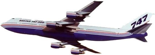 B747-300:747-200型的改进型,其设计理念来源于并不成功的747SP,当时波音公司通过实验发现一定的机首上层结构形状更有利于稳定气流降低阻力,进而减少油耗,在1980年6月12日开始747SUD项目,而后型号又更改为747EUD,应客户要求也为个别747-100/-200型进行延长上层舱的改装,1982年10月5日747EUD首飞时正式定名为747-300,747-300型在747-200型的基础上将上层客舱加长7.11米,并增设一舱门,上层舱乘客由32人增到69人,还增加了上层舱舷窗,直式楼梯代替了原来螺旋式楼梯。最大巡航速度从M0.84增加到M0.85。并与1983年3月7日获美国联邦航空局型号合格证。1983年4月开始交付使用。瑞士航空公司是首家用户。747-300系列1990年停产,共生产83架。