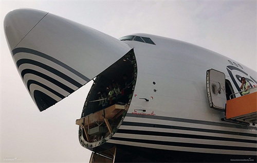 B747-400F型: 400型的全货机型。也是目前747系列最常见的货运机型。