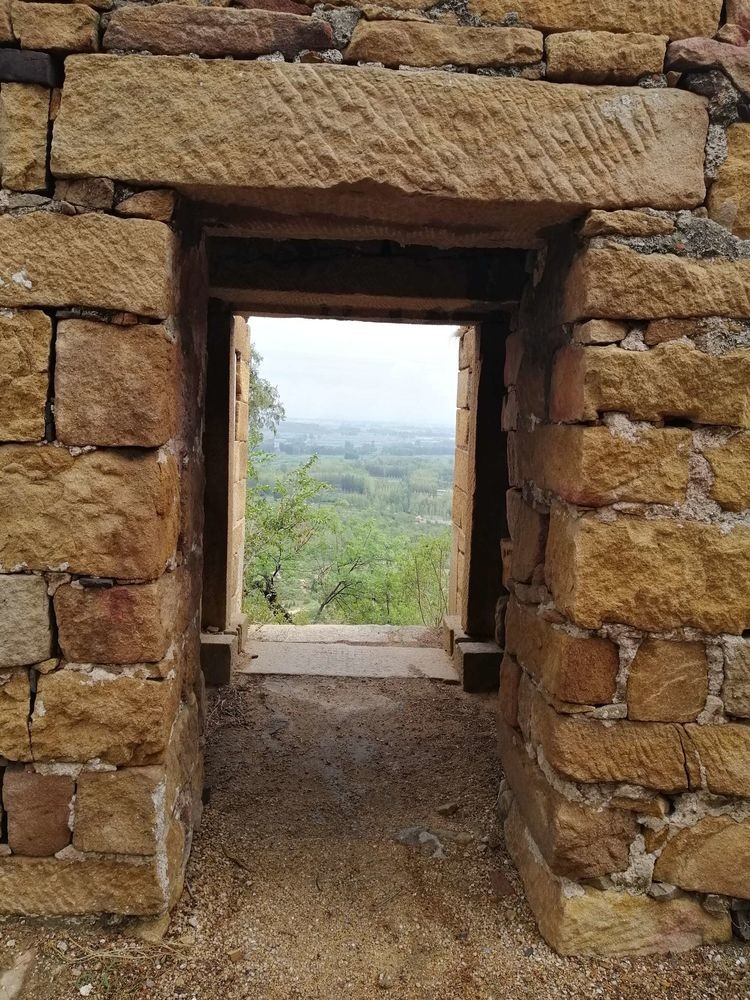 门洞东西侧石墙上镶嵌着两块对称的建庙石碑,两碑碑面均为高0.4米、宽0.5米,镶嵌在南天门门跺1.3米高处。东侧为清康熙三十三年四月建玉皇阁记载,西侧为清康熙三十三年四月建圣母元君庙记载,碑文曰:“此官史已悠久,曾几经续修,始于年月无考……”由此可见,这座山上的庙观历史久远。读着此次官修记中“曾几经续修,始于年月无考”的文字,脑际间不禁想起了清康熙、清宣统、民国等多本《莱芜县志》中“汉武帝刘彻元封元年(辛未,公元前110年)夏四月,封泰山,禅肃然”的记载。肃然山,位于泰山东北麓(今莱芜市西北)。《金史·地理志》载:莱芜县有肃然山。清顾祖禹《读史方舆纪要·山东二·济南府》载:“肃然山,州(泰安州)东北七十里……山势巍峨,对之肃然,因名。”南北朝谢灵运《泰山吟》:“登封瘗崇坛,降禅藏肃然。”写汉武帝“禅泰山东北麓的肃然山”的典故。我想,肃然山有可能就是这座山势巍峨、崮顶秀美的“崮子山”。