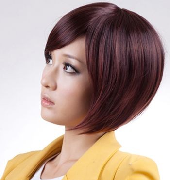 脸型较宽,额头较大的女孩子,不妨来考虑尝试打造这一款女生小斜分刘海齐颈短发沙宣头,简单的小斜分刘海,视觉上拉长女孩子脸廓,完美修饰勾勒女孩子秀美精致的脸型,焦糖发色俏皮灵动~