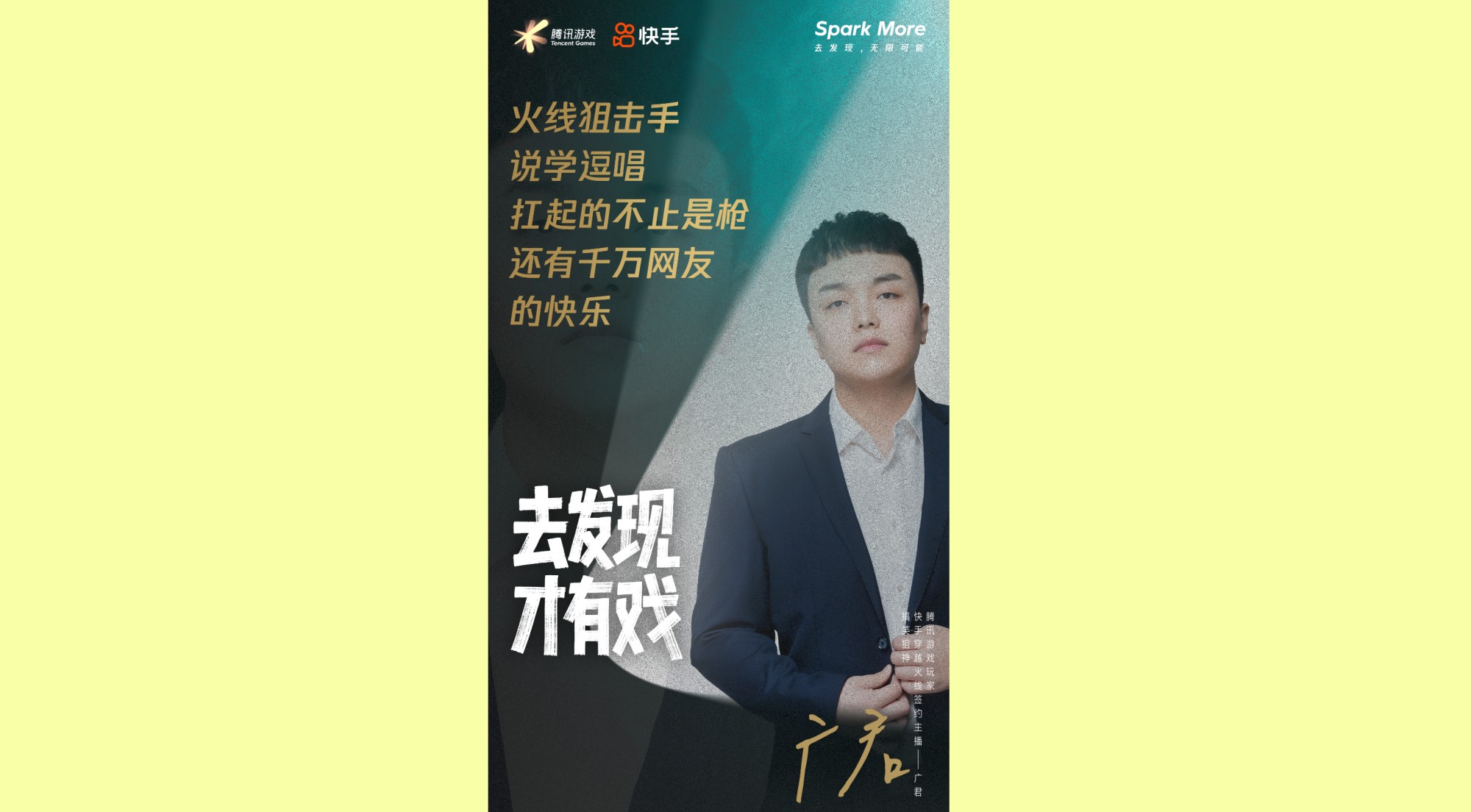 在近期的TX一个活动宣传片当中,来自ks的主播广君,是以唯一一个穿越火线主播的身份入围其中,能够得到鹅厂顶级宣传片的流量曝光了,足以见得广君这名主播的实力不容小觑。实际上Ks广君也是一名从要舞台上走下来的主播,在2016~2018年广君然后带队取得了省级联赛冠军以及TGA大奖赛总冠军,在后穿越火线时代当中,广君也是一名极具代表性的人物。主播广君最擅长的就是狙击枪的使用,瞬狙对于主播广君来讲简直都是信手捏来。