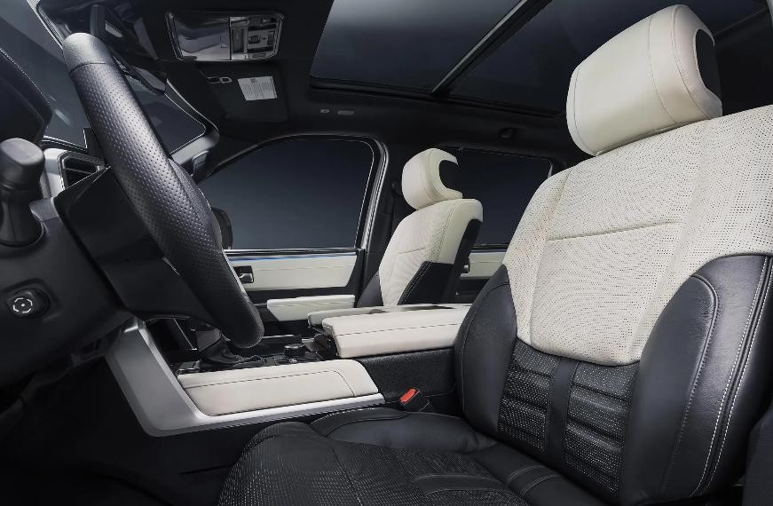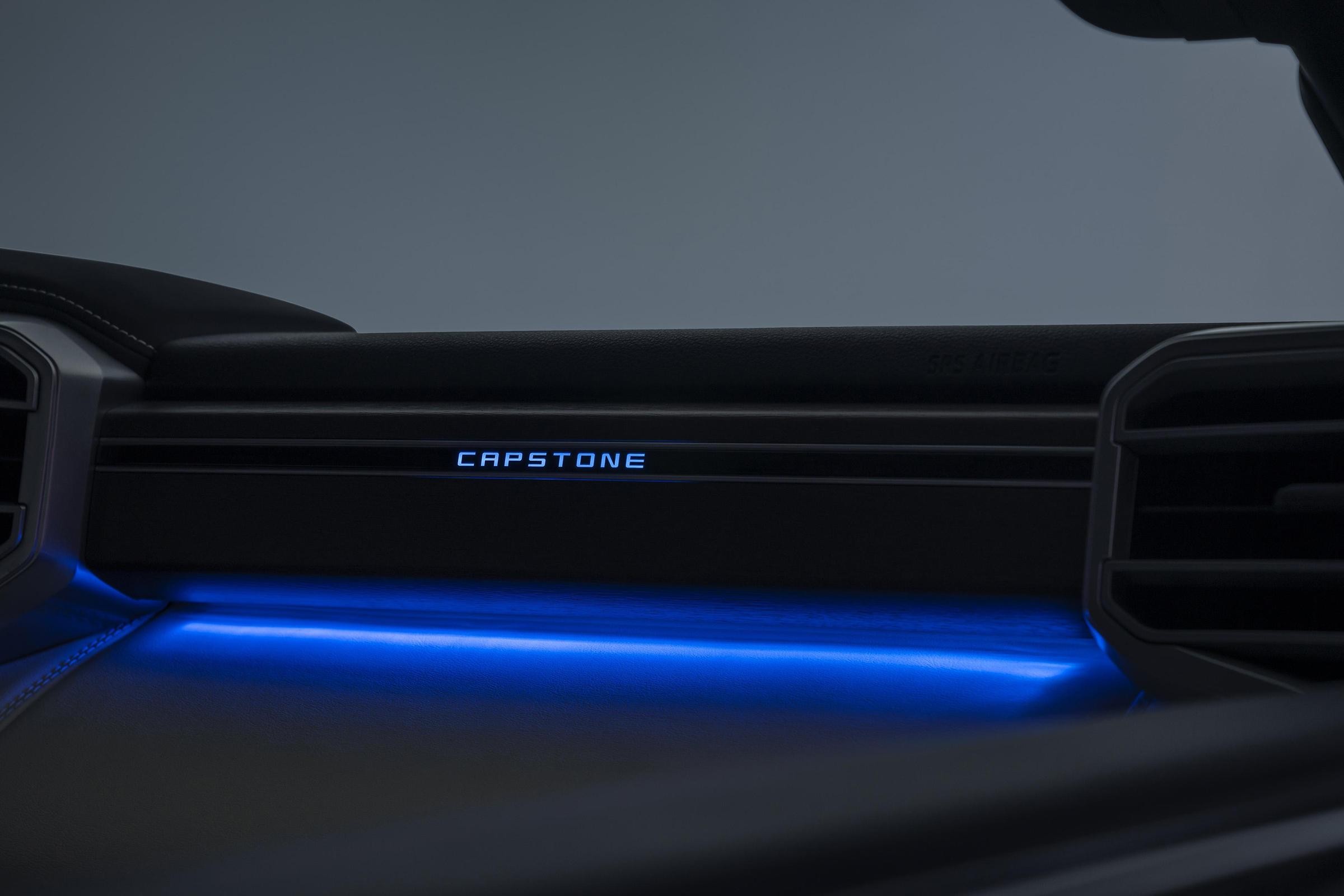 Capstone车型的重点还是在车内部分的提升。坦途Capstone采用了大面积皮革和胡桃木饰板进行组合,辅以金属质感的装饰条和双色皮革拼接而成的座椅,突显出豪华的视觉效果,在配置上,新车也给到了14英寸中控屏、12扬声器的JBL音响等。在安全配置上,新车还配备自适应巡航、车道偏离预警、碰撞预警、自适应远光灯、道路标识识别、盲点监测等。