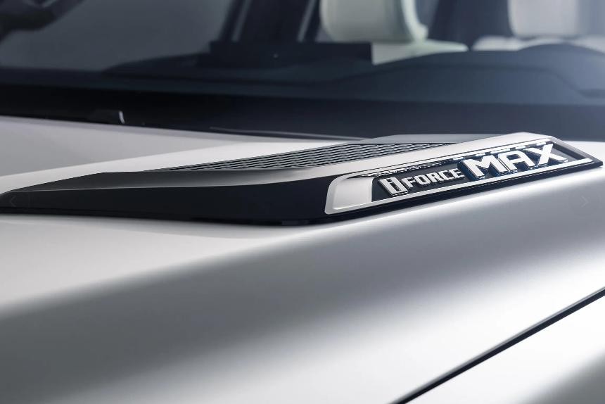 尾部延续了现款车型的硬派设计,竖状排列的尾灯点亮后辨识度极高。此外,后包围和排气系统也加入了镀铬装饰点缀,车斗后尾门也有银色装饰提升氛围感。货厢尾门也有银色装饰。