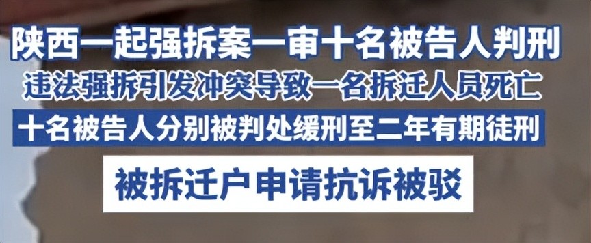 陕西强拆案一审,十名被告人判刑两年或缓刑,被拆户申请抗诉被驳