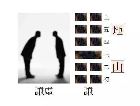 谦卦,下卦为艮,上卦为坤,艮为山为阳实,坤为地为阴虚。山本来是高出地面的,现在却在地面以下,内阳外阴,内实外虚,故而象征谦虚。