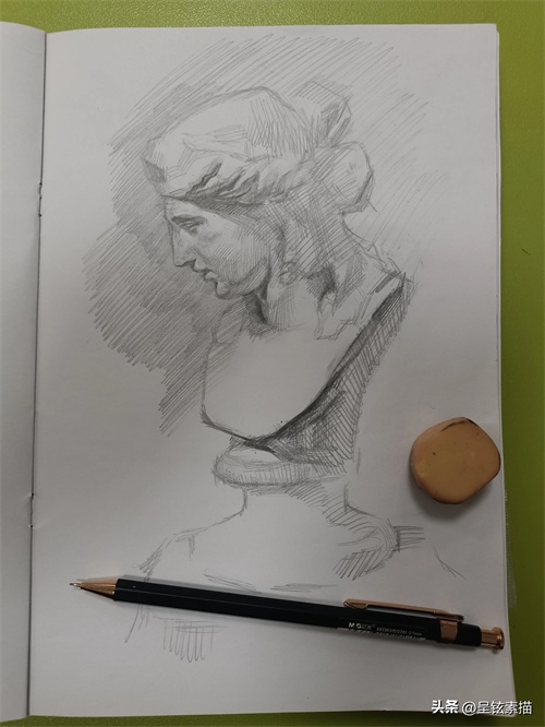 在开始素描之前,要仔细观察石膏像的特征和结构。注意石膏像的轮廓、明暗关系和细节特征,以便更好地表现其形态和立体感。