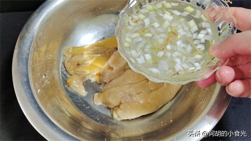 第一步:要到菜市场购买最新鲜的鱼籽,买回来后彻底地清洗干净,而后加入一些葱姜水,料酒,食盐,生抽等进行腌制一番,帮助去除部分腥味。这里的葱姜水,就是把一些葱姜用热水泡一泡,揉一揉得来的。