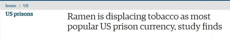 高昂的价格使香烟显然不再适合充当货币,美国监狱体系内的黑色交易市场确定了最新的流通规则,方便面成为了美国监狱的硬通货,堪称象牙塔中的尖货。