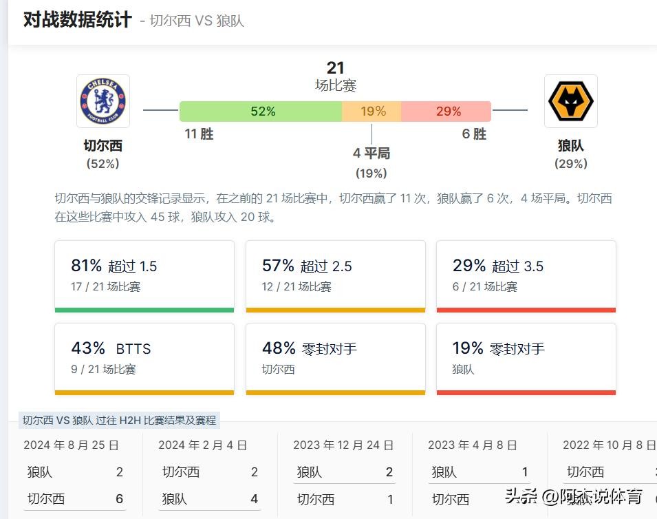 这场比赛的胜负,依然难以预测。切尔西凭借主场优势和强大的进攻火力,占据着明显的上风,但狼队依靠快速反击和顽强的防守,依然有能力制造不小的威胁。综合来看,切尔西稍占优势,但狼队若能有效遏制切尔西的进攻,并利用反击机会,则有可能带走分数。