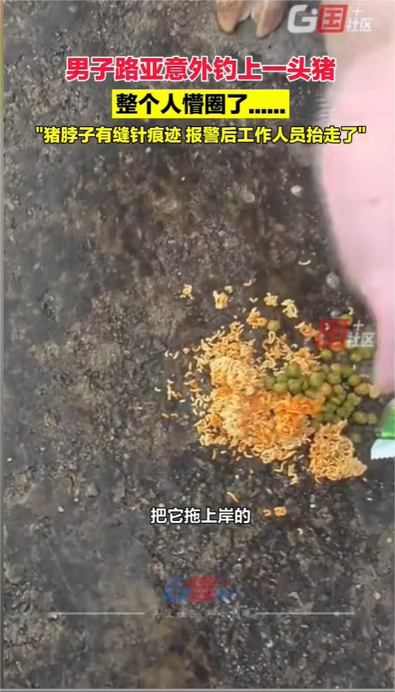 上海浦东钓鱼佬钓上二师兄,脖子有缝针,网友脑洞大开:猪藏毒