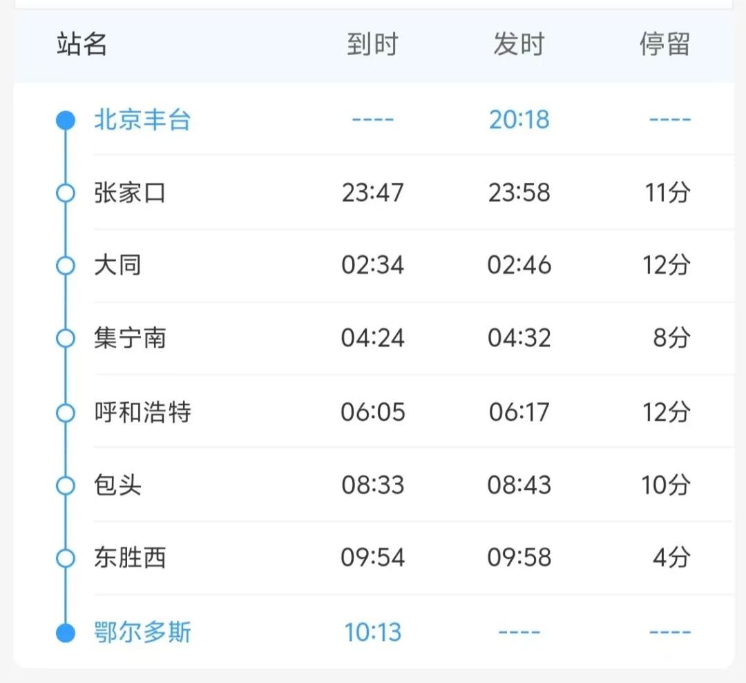 鄂尔多斯至北京丰台K89/90次