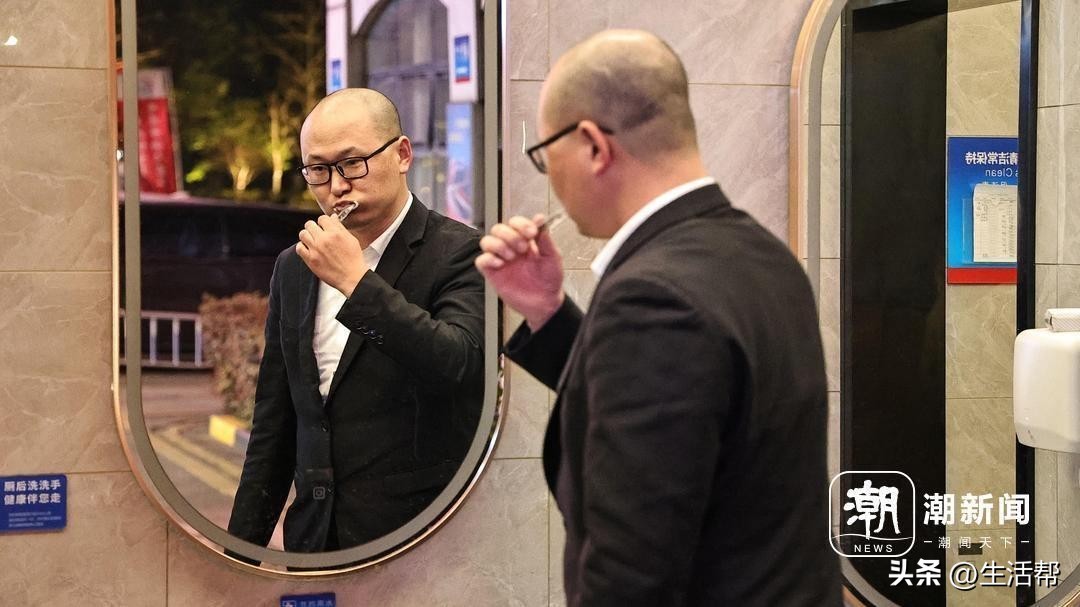 深夜,张熹在公共卫生间洗漱。潮新闻记者 于诗奇 摄