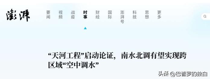 [4] 【澎湃新闻】——《“天河工程”启动论证,南水北调有望实现跨区域“空中调水”》