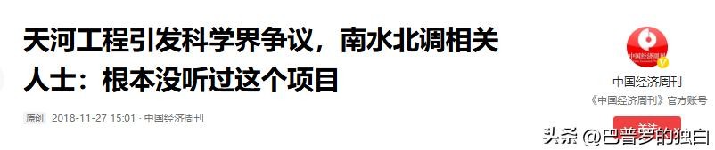 [3] 【中国经济周刊】——《天河工程引发科学界争议,南水北调相关人士:根本没听过这个项目》