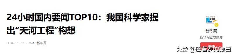 [1] 【新华网】——《24小时国内要闻TOP10:我国科学家提出“天河工程”构想》