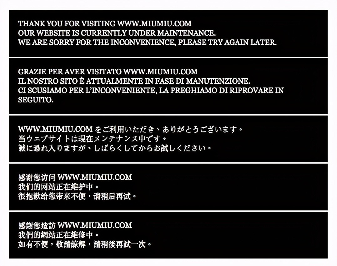 ▲目前MIU MIU官网商品页面显示维修中。(图/翻摄自官网)