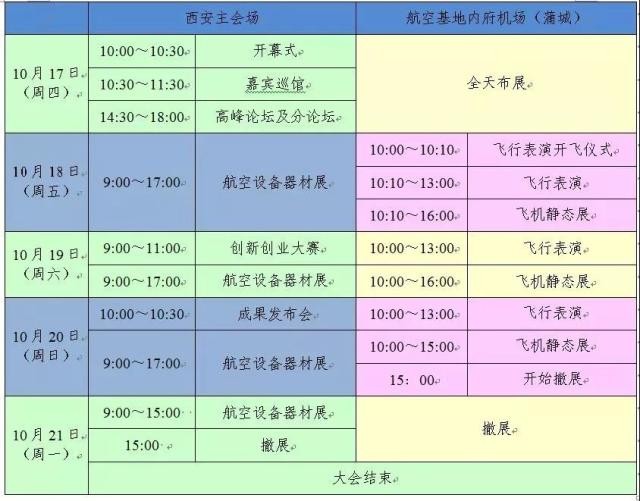 西安航展日程安排表