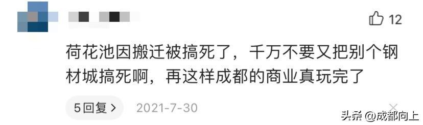 还有人担心,不要因为搬迁把钢材城给搞垮了,毕竟有荷花池搬迁商贸城的前车之鉴,希望牛牛一定要提前布局好,让这些为城市发展贡献过一份力的商铺,挪窝后依旧茂密生长!