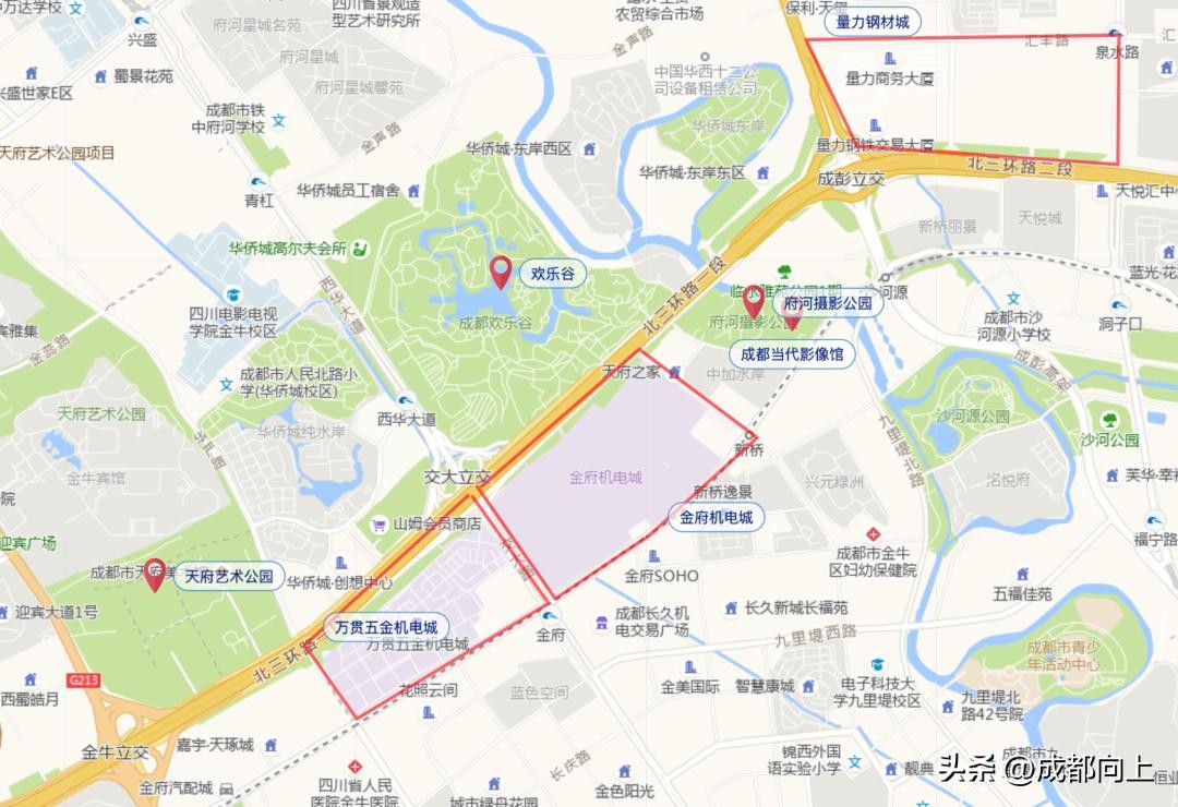 沿着北三环一路向西,府河摄影公园、成都当代影像馆、欢乐谷、天府艺术公园等城市场景,已慢慢将这片区的公园城市气质给撑起来了,但北三环内的万贯、金府两大传统市场,一直拖着牛牛高质量发展的后腿。