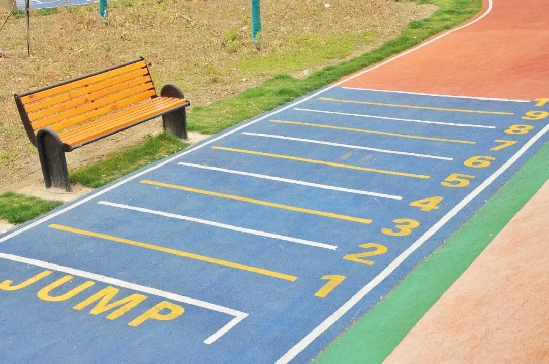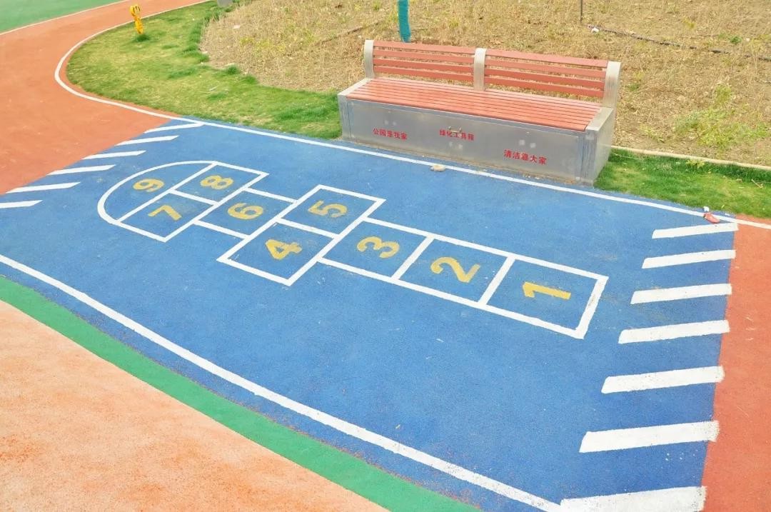 园区利用塑胶跑道,特意打造了小小的运动平台。立定跳远,跳房子,秒回童年时光。顺道还能测验下自己,小学体育还能及格不?