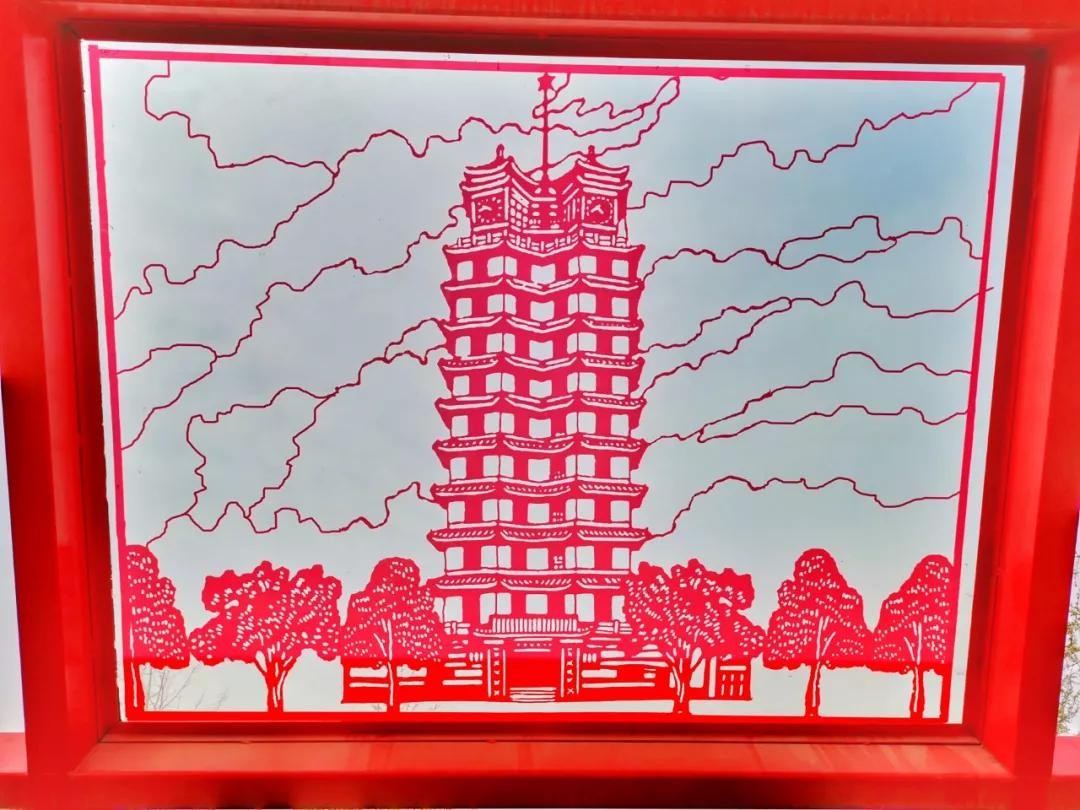 这间长廊,就把最有代表特色的建筑,以剪纸的艺术形式雕刻成形。