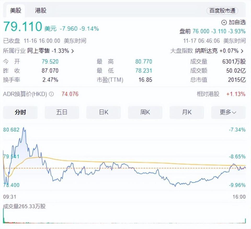 虽然财报的表现还差强人意,但阿里的股价却迎来了下跌,截至美股 16 日股价跌近 9%。