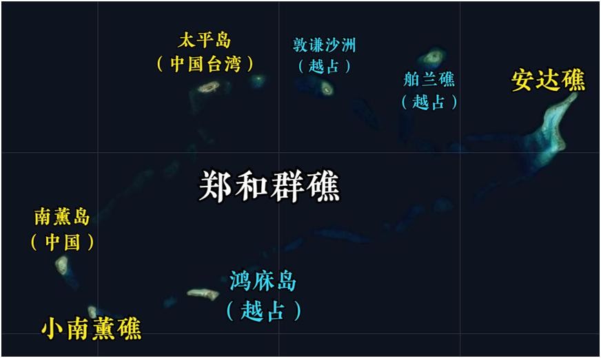 郑和群礁中越占岛礁位置图