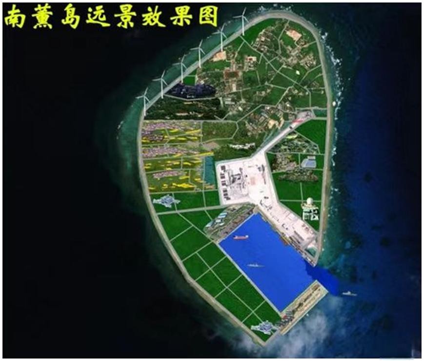 鉴于南薰礁地理位置的重要性,以及改善驻岛部队生活条件的需要,我国决定对南薰礁吹沙填海造陆。2014年6月6日开始吹填,经过半年多的建设,南薰礁由礁变岛,面积达到0.18平方公里。我国在南薰岛上建设了港口、大型直升机停机坪及海水淡化设备等基础设施。建设了光伏、风力、燃油发电组成的智能微电网,能够确保岛上的电力供应。南薰岛的建设极大地改善了中国驻岛部队的驻守条件,巩固了中国在郑和群礁中的存在,也有利于与驻守太平岛的台军形成互动,共同捍卫国家主权和领土完整。