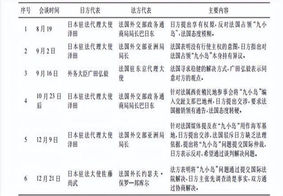 1933 年日法围绕“九小岛”问题交涉情况
